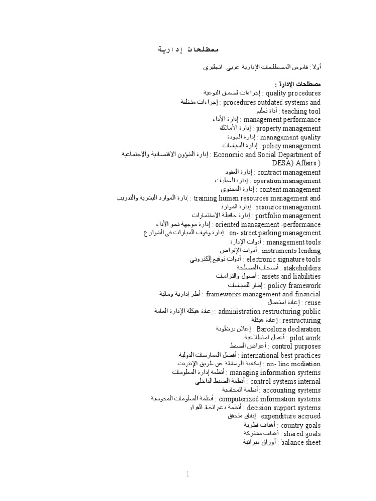 مصطلحات إدارية مترجمة Pdf