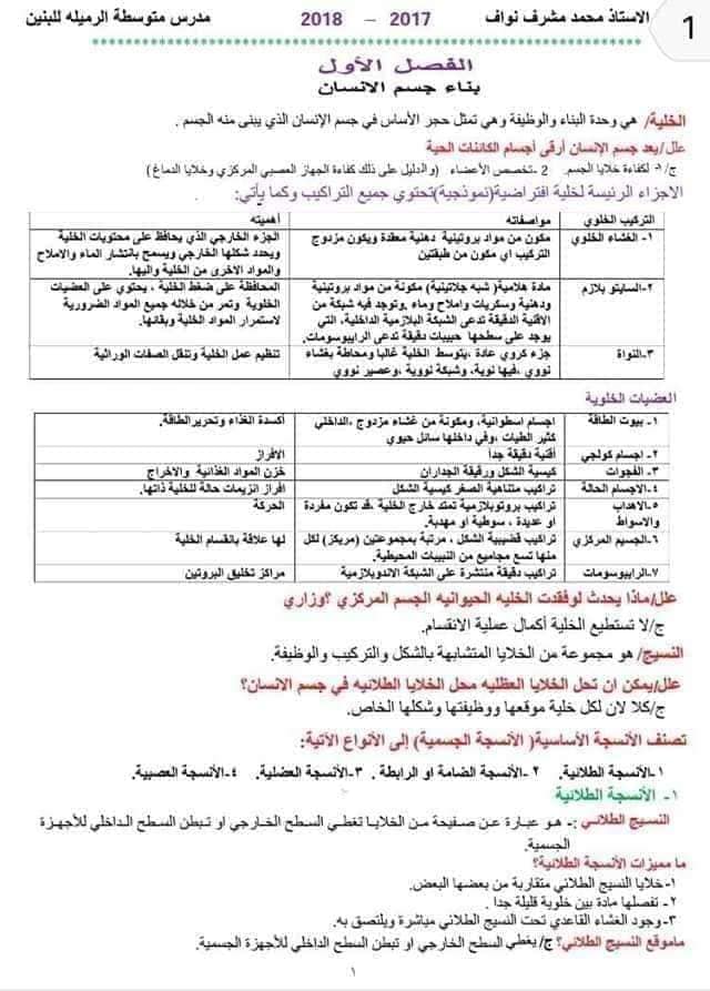 المراجعة المركزة مادة الاحياء الثالث متوسط 2018 تسهيل كامل للمادة