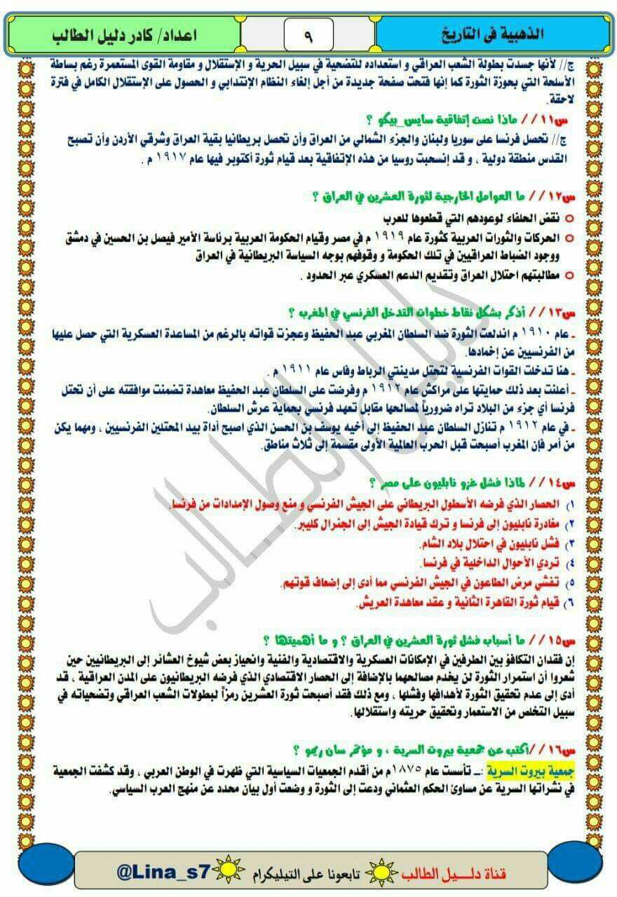 ملخص الذهبية في التاريخ للثالث متوسط 2019 كادر دليل الطالب بشير حميد