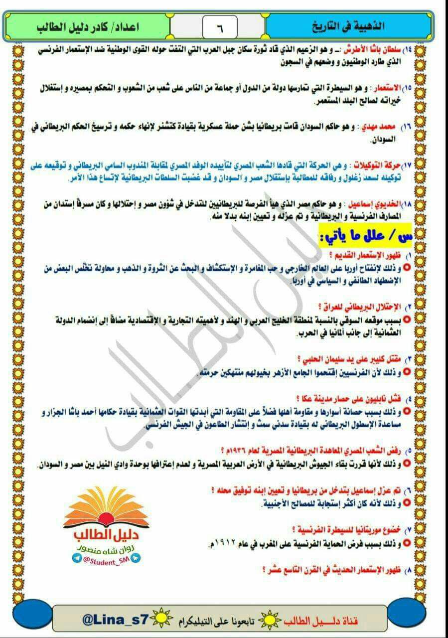دليل الطالب الثالث متوسط ملخص مادة التاريخ ٢٠١٩ ملخص Facebook