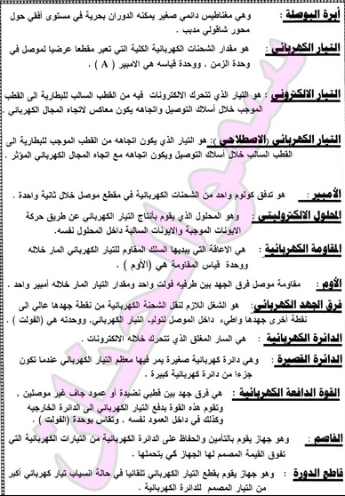ملخص رائع جدا لمادة الفيزياء للصف الثالث المتوسط 2017