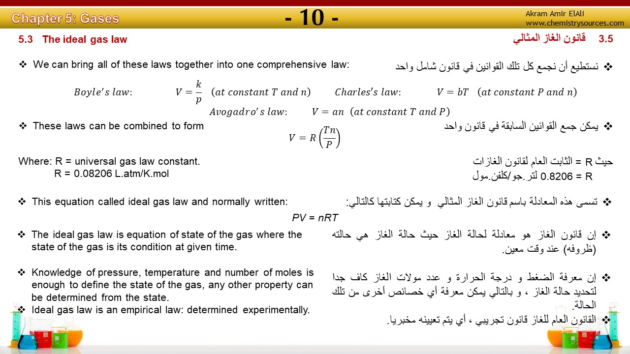 الكيمياء العامة المصورة قانون الغاز المثالي مصادر الكيمياء