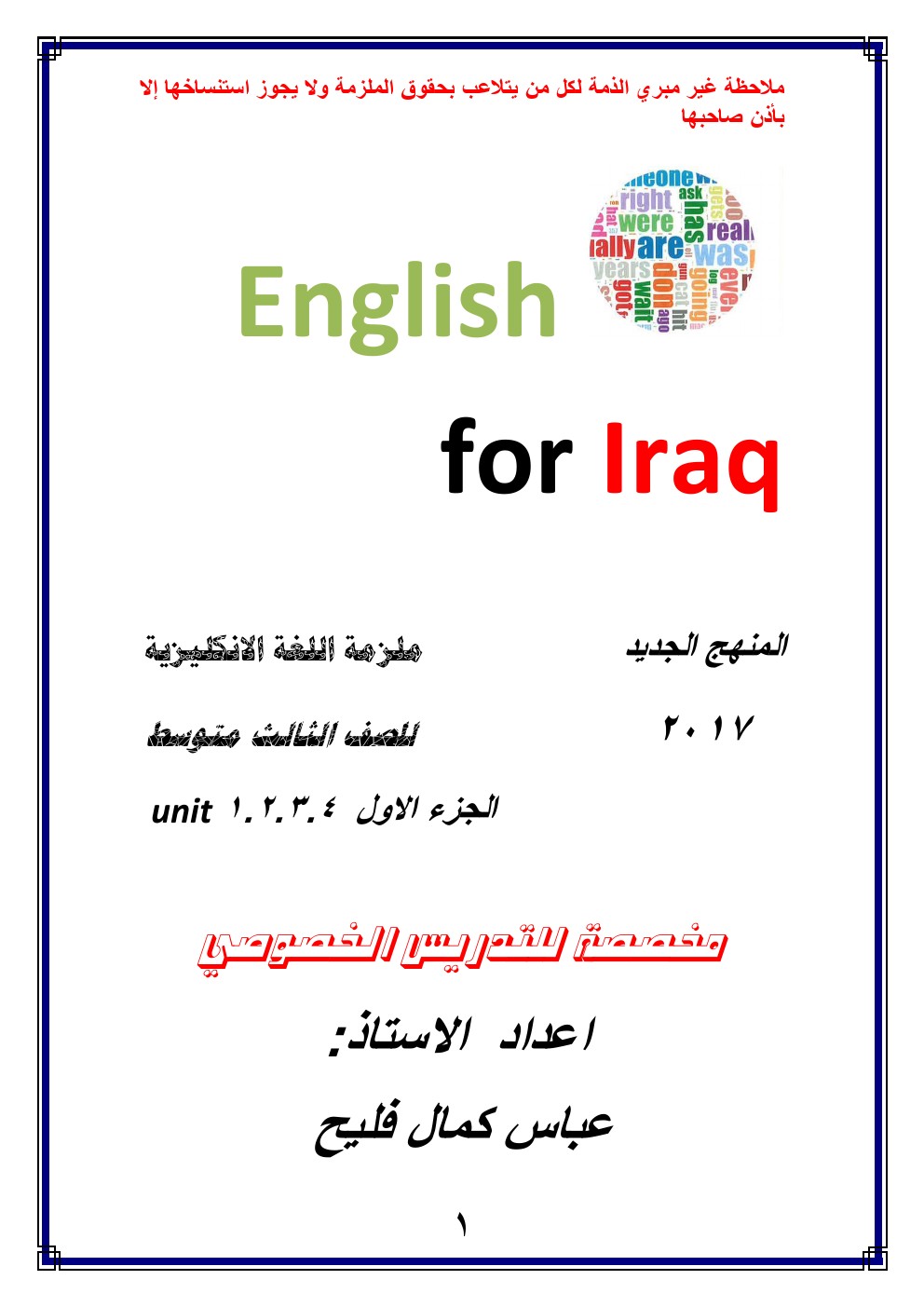 الجزء الاول ملزمة اللغة الانكليزية المنهج الجديد للصف الثالث المتوسط 2016 2017 للاستاذ عباس كمال فليح