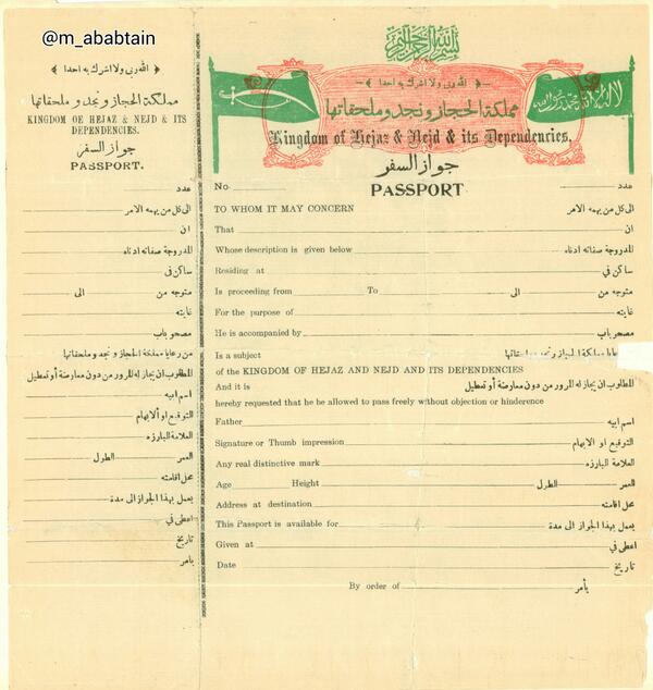 نجد On Twitter جواز سفر مملكة الحجاز وسلطنة نجد وملحقاتها قبل توحيد المملكه ويلاحظ كتابة الجنسيه وحالتها نجدي