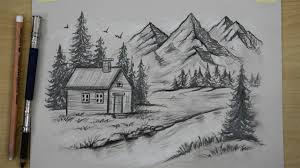 رسم منظر طبيعي بالرصاص سهل جدا خطوه بخطوه للمبتدئين Youtube