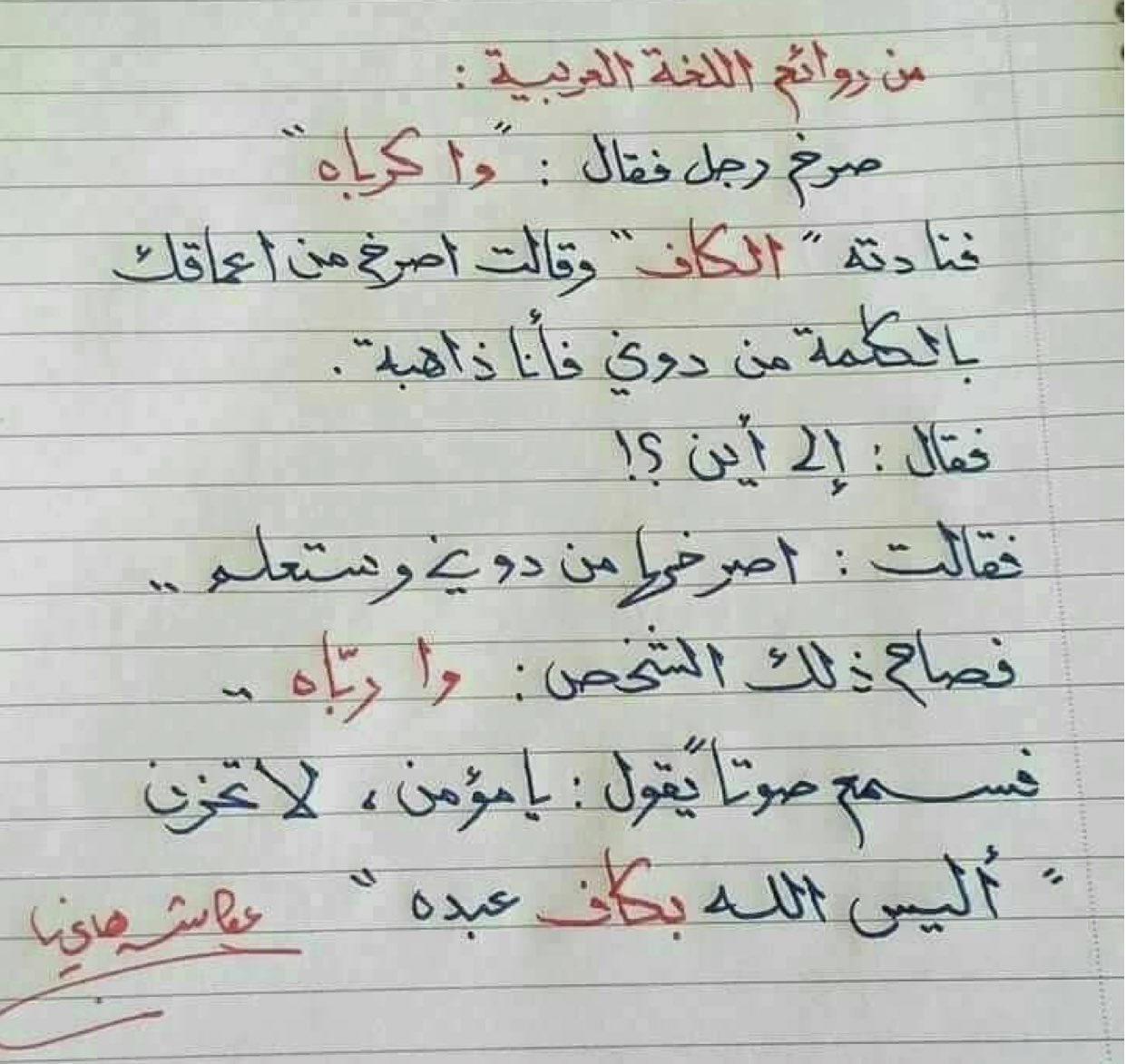 محمد عبدالرحمن زنيم On Twitter من روائع اللغة العربية صرخ رجل فقال واكرباه فنادته الكاف وقالت إصرخ من أعماقك بالكلمة فأنا ذاهبة فقال إلي أين فقالت إصرخها من دوني وستعلم فصاح الرجل وارباه فسمع