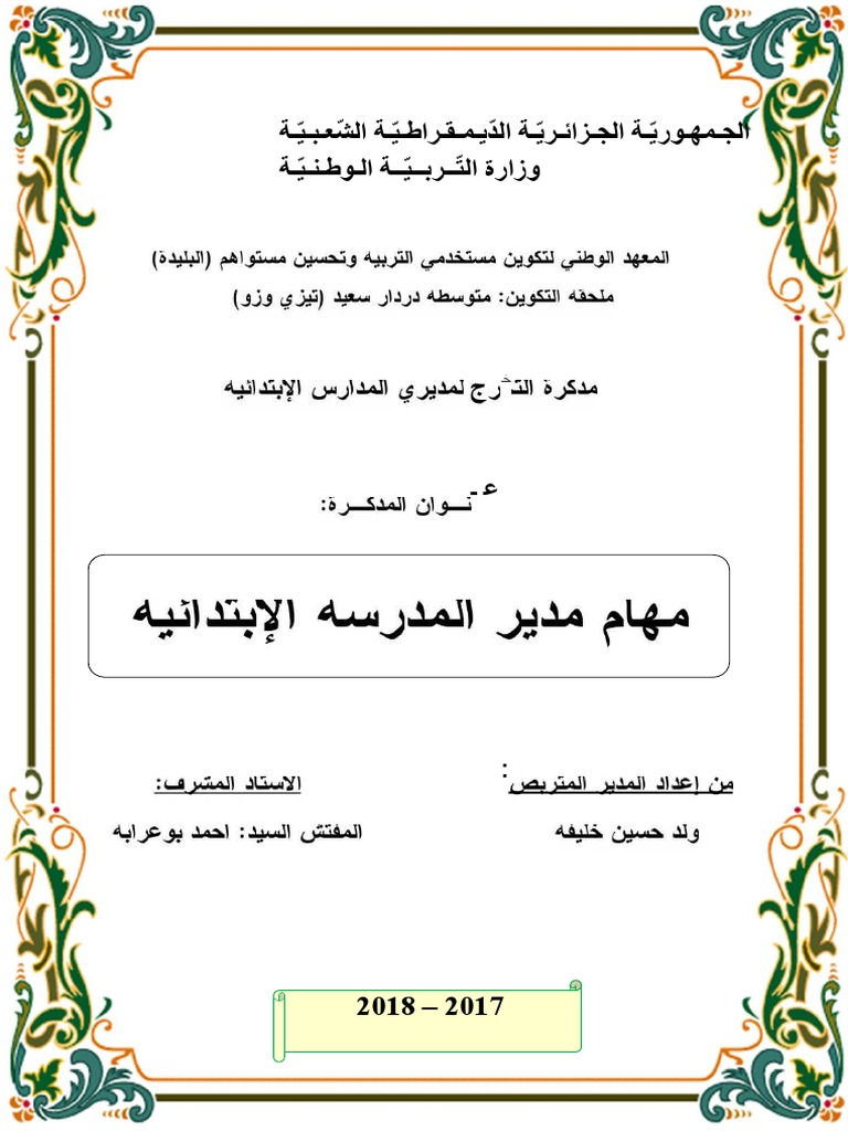 مهام مدير المدرسة الابتدائية من خلال التشريع المدرسي الجزائري Facebook