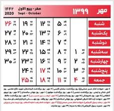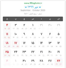 تقویم مهر 99 تقویم مهرماه سال 1399 در یک نگاه تقویم مهر ۱۳۹۹