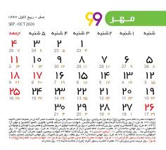 تقویم مهر 99 تقویم مهر ۹۹ تعطیلات مهر 99 مناسبت های مهر ۹۹