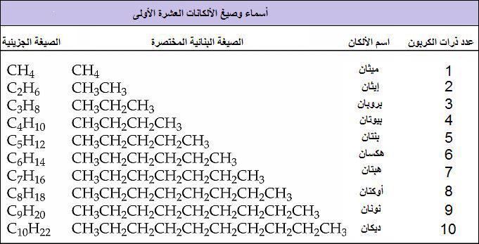 ميثان إيثان بروبان بيوتان بنتان هكسان هبتان أوكتان نونان ديكان. Methane un i. Propane tri iii.