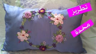 مفارش سرير و وسائد مطرزة بالساتان