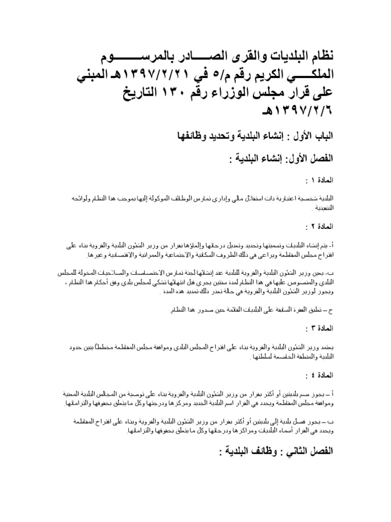 نصوص نظام البلديات والقرى 1397هـ في السعودية استشارات قانونية مجانية