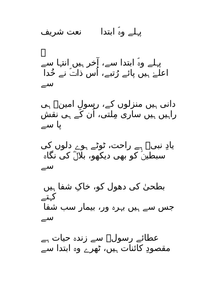 پہلے وہ ابتدا نعت شریف