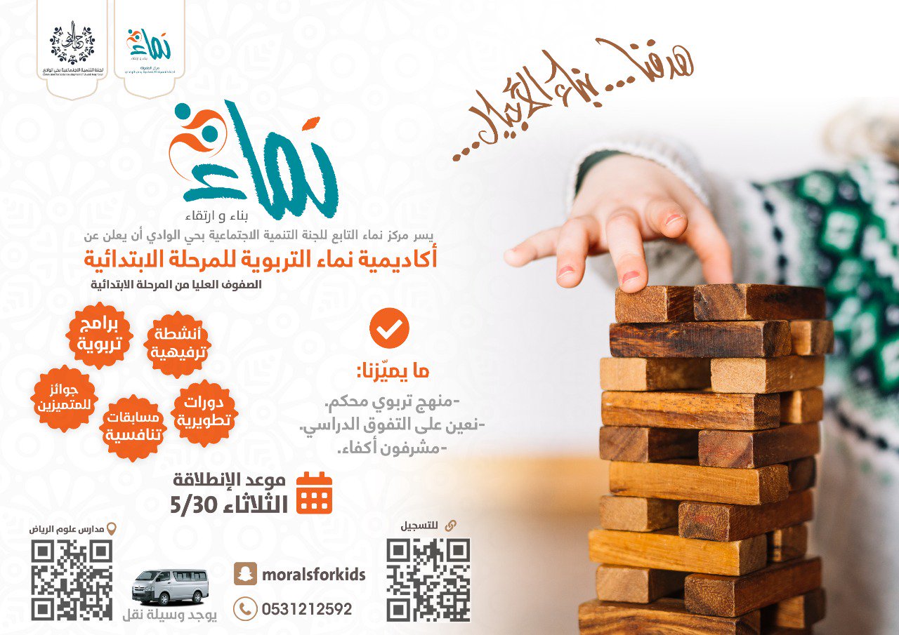 لجنة التنمية الاجتماعية بحي الوادي No Twitter يدعوكم مركز نماء للأشبال التابع للجنة التنمية الاجتماعية بحي الوادي للمشاركة في أكاديمية نماء المستهدفين الصفوف العليا من المرحلة الابتدائية المقر مدارس علوم الرياض الأهلية للتفاصيل 0531212592