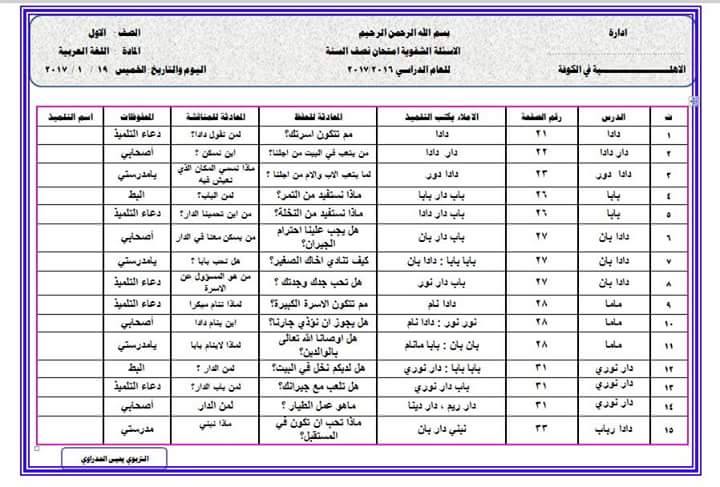 اسئلة نصف السنة لمادة القراءة العربية للصف الثاني الابتدائي الامتحان الشفوي منتديات درر العراق
