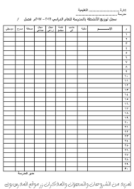 سجل توزيع الأنشطة اللاصفية بالمدرسة للعام الدراسي 2016 2017