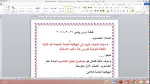 الخطة السنوية واليومية لمادة الحاسوب الاول متوسط للعام الدراسي الجديد 2016 2017 منتديات درر العراق