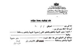 نموذج عقد التوظيف بصفة مؤقتة للعمل بوزارة التربية والتعليم 2019