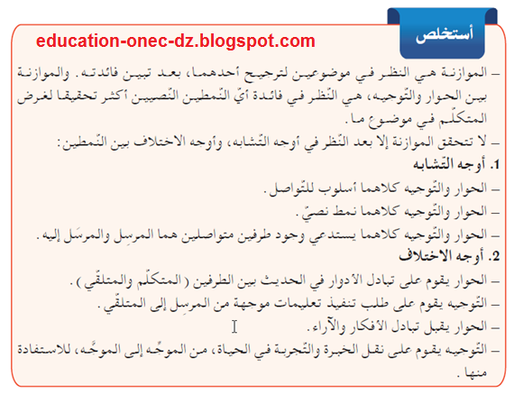 إدماج موارد المقطع السابع الموازنة بين الحوار والتوجيه حل الوضعية الانطلاقية المشكلة الأم للسنة الثانية متوسط