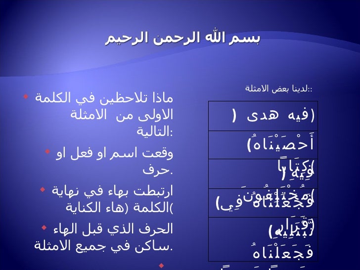 دورة أصول التجويد بإشراف المعلمة الفاضلة هالة سرحان هاء الكنايــــة