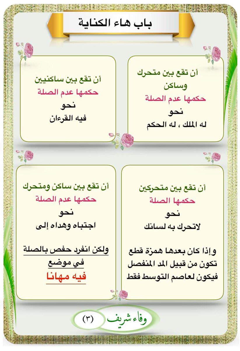 تلخيص هاء الكناية من الشاطبية والدرة واحة القراءات العشر وفاء شريف فيسبوك