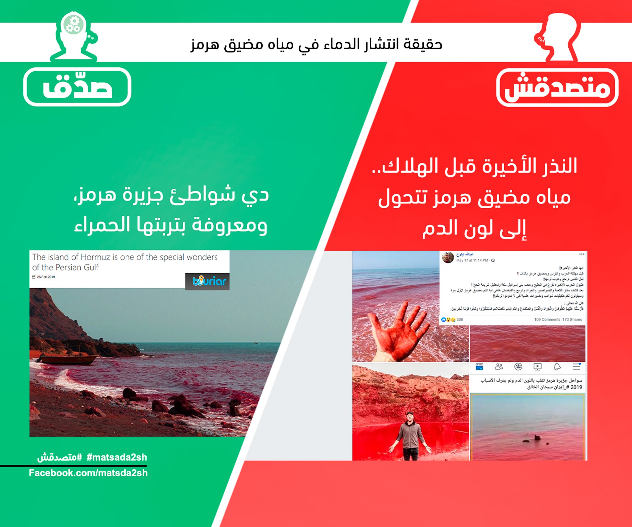 متصدقش Auf Twitter الكلام ده غير صحيح الصور دي من جزيرة هرمز الإيرانية وهي جزيرة معروفة من سنين بتربتها الحمراء اللي بتأثر لون شواطئها وبيسموه الشاطئ الأحمر وبتعتبر مقصد أساسي للسياح بسبب