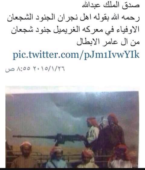 قطمير النجراني On Twitter صدق الملك عبدالله رحمه الله بقوله اهل نجران الجنود الشجعان الاوفياء في معركه الغريميل جنود شجعان من ال عامر الابطال Http T Co Pjm1ivwyik