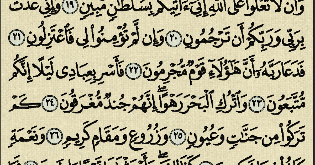 شرح وتفسير سورة الدخان Surah Ad Dukhan من الآية 19 إلى الآية 39 معاني الأسماء ومعاني الكلمات وتفسير القرآن الكريم