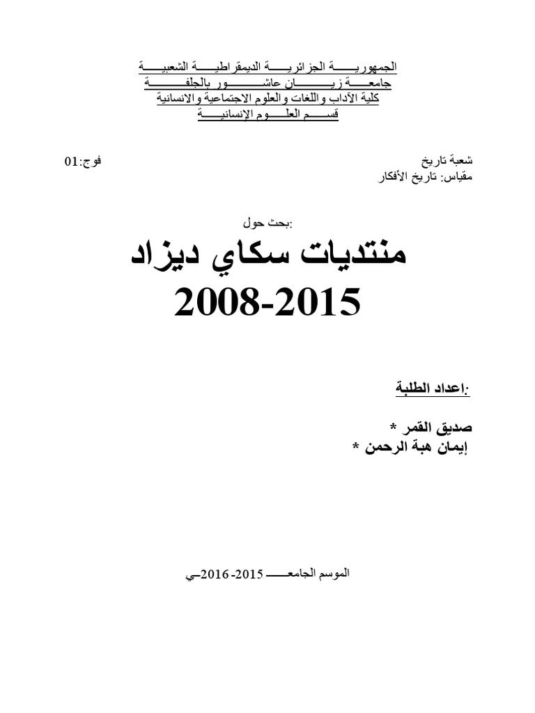 نموذج واجهة مذكرة تخرج ماستر 2019 2018 Dep Economie M Sila Facebook