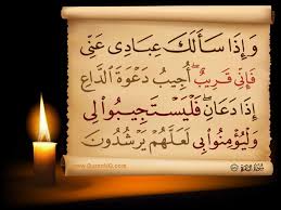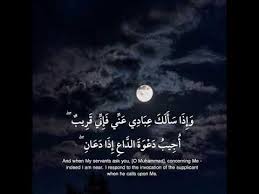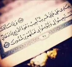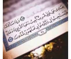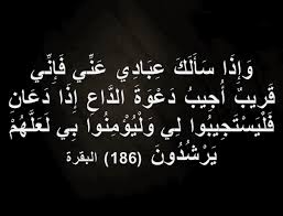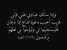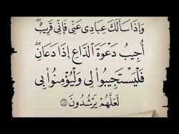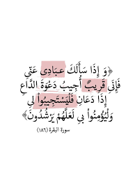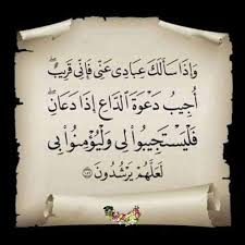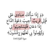 و إ ذ ا س أ ل ك ع ب اد ي ع ن ي ف إ ن ي ق ر يب أ ج يب د ع و ة الد اع إ ذ ا د ع ان ف ل ي س ت ج يب وا ل ي و ل ي ؤ م ن وا ب ي ل ع ل ه م ي ر ش د ون البقرة 186