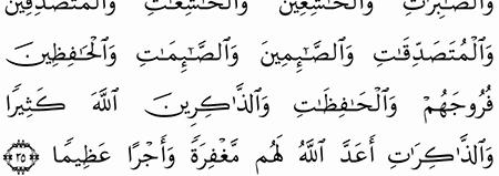 إ ن ال م س ل م ين و ال م س ل م ات و ال م ؤ م ن ين و ال م ؤ م ن ات و ال ق ان ت ين و ال ق ان ت ات و الص اد ق ين و الص اد ق ات و الص اب ر ين و الص اب ر ات و ال خ اش ع ين و ال خ اش ع ات و ال م ت ص د ق ين و ال م ت ص د ق ات