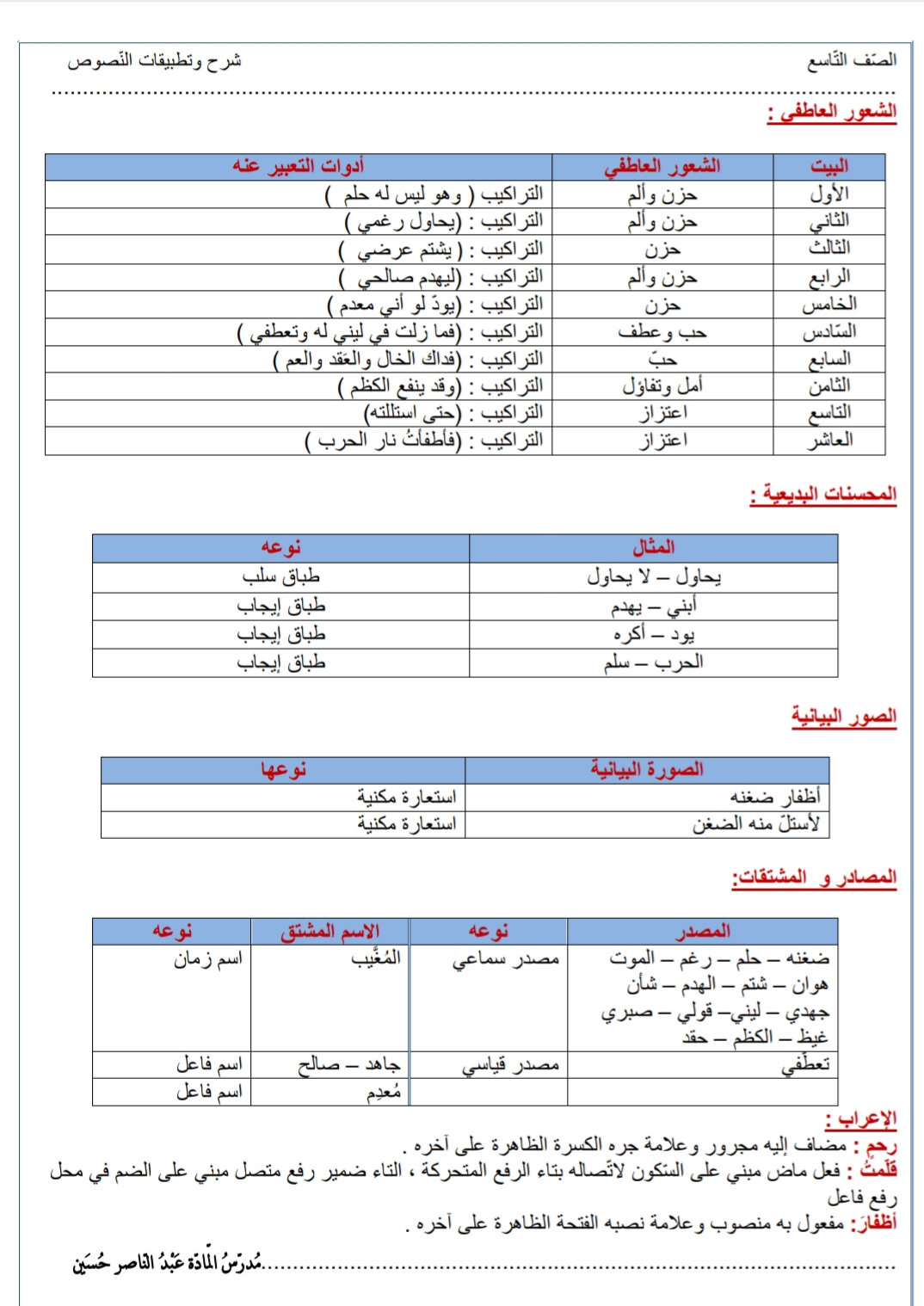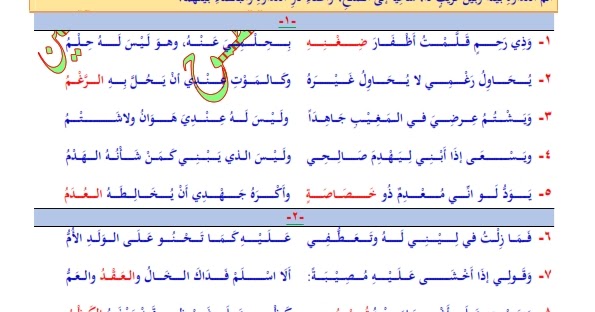 شرح وإعراب قصيدة وذي رحم للصف التاسع سوريا ـ منهاج جديد مكتبة الفريد الإلكترونية