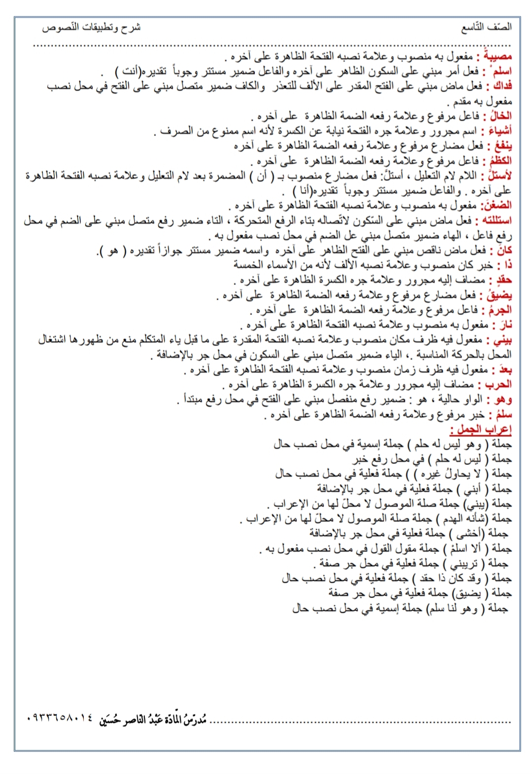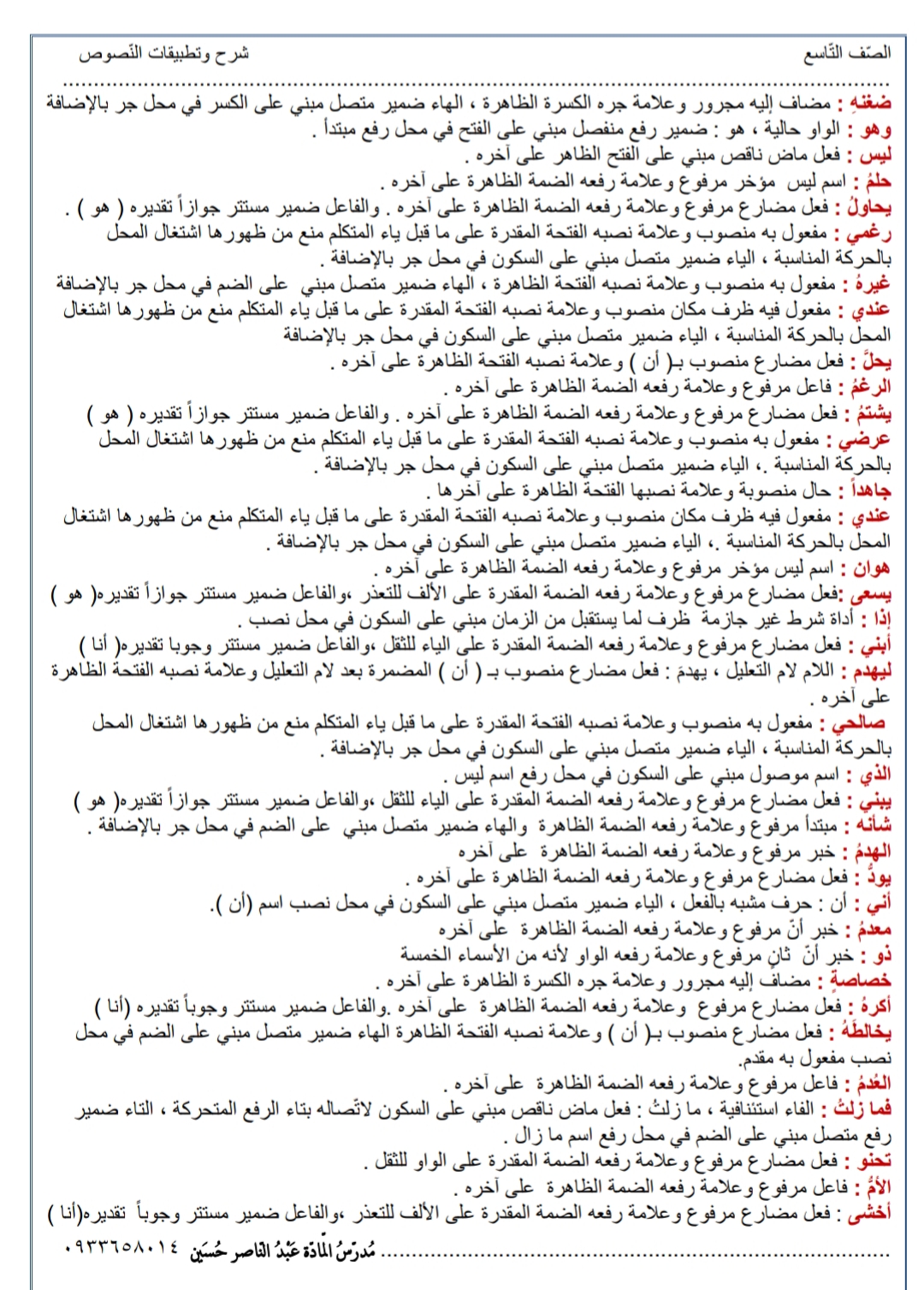 تاسع لغة عربية اعراب قصيدة وذي رحم رياضيات دروس صالح طراف Facebook