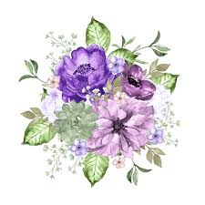 زهور أرجوانية وبيضاء باقة ورد بنفسجي بنفسجي الأرجواني ورقة فرع Png