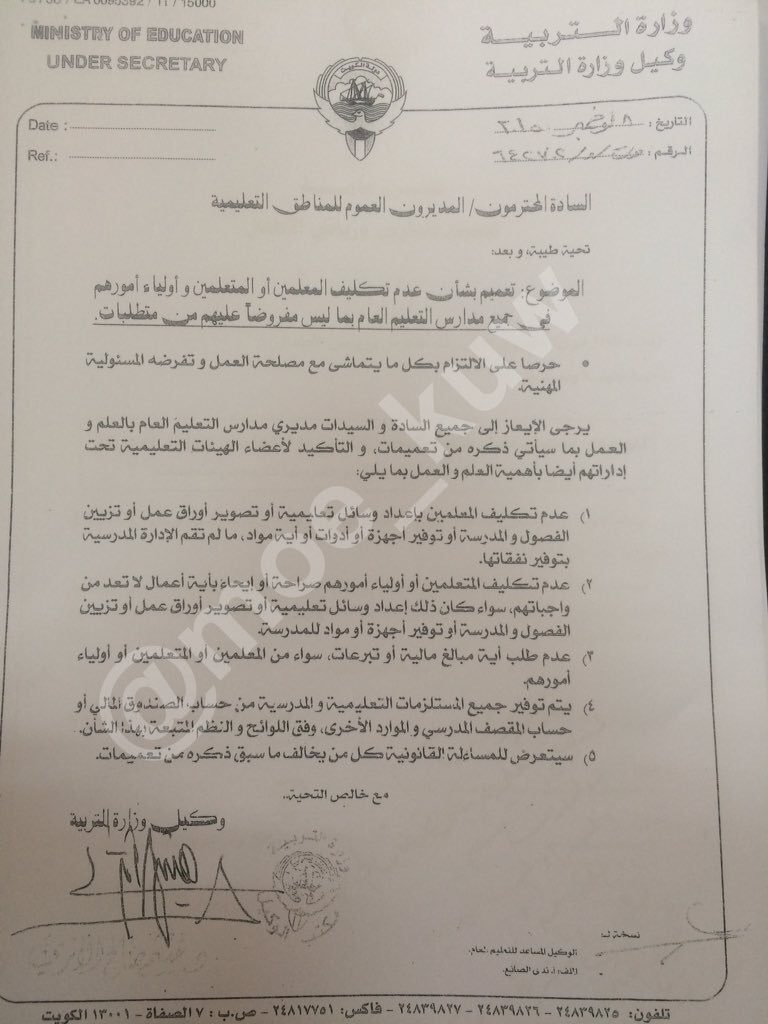 معلم نت خلك في البيت Na Twitteru صورة من تعميم وكيل وزارة التربية بعدم تكليف المعلمين أو المتعلمين وأولياء أمورهم بما ليس مفروضا عليهم من متطلبات