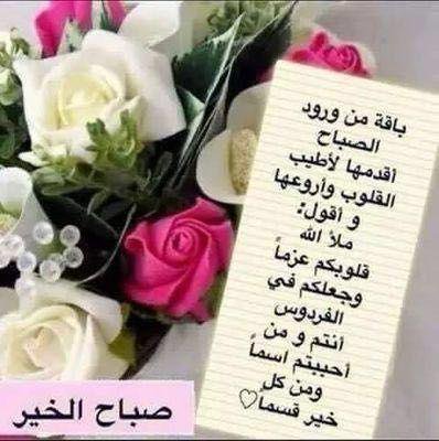 أحمد على تويتر بــاقة من ورود الصباح أقدمـــها لأطيب القلوب وأروعها وأقـــول ملأ الله قلوبكم عزمــا وجعلكم في الفردوس أنتم ومن أحببتم إسما ومن كل خير قسما صبـــاح الخير