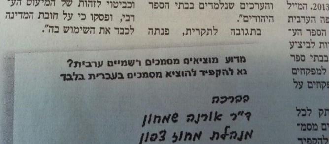حظر استخدام اللغة العربية في المراسلات الرسمية لوزارة المعارف الاسرائيلية Mashreq News
