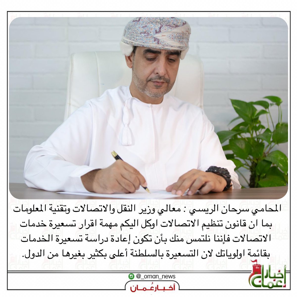 أخبار عمان على تويتر المحامي Drsarhan معالي وزير النقل والاتصالات وتقنية المعلومات نلتمس منك بأن تكون إعادة دراسة تسعيرة الخدمات بقائمة اولوياتك لان التسعيرة بالسلطنة أعلى بكثير بغيرها من الدول Https T Co 4s4dbkj2bh