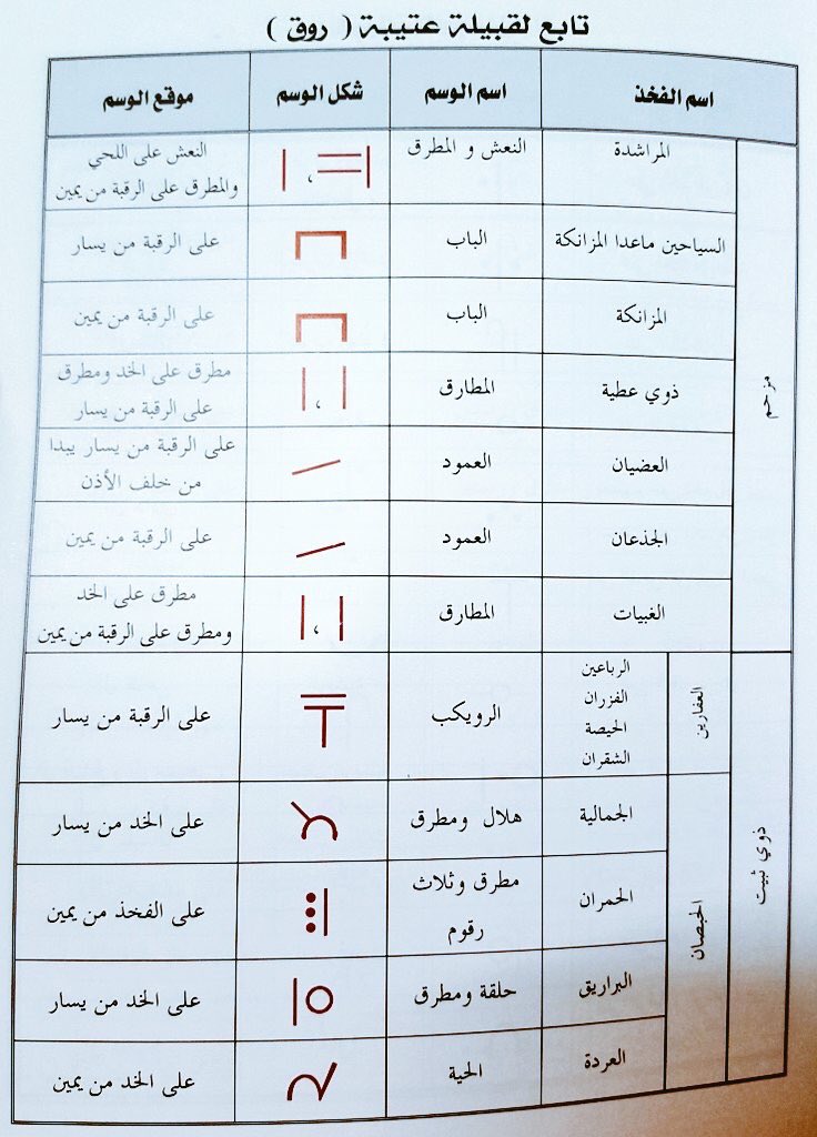 موروث On Twitter الجداول التي تبين الفروع والوسوم منقولة من كتاب وسوم الإبل ومن لديه إضافة أو تعديل نرحب به تحت هذه التغريدة موروث عتيبه Https T Co 3jclwh9rhr