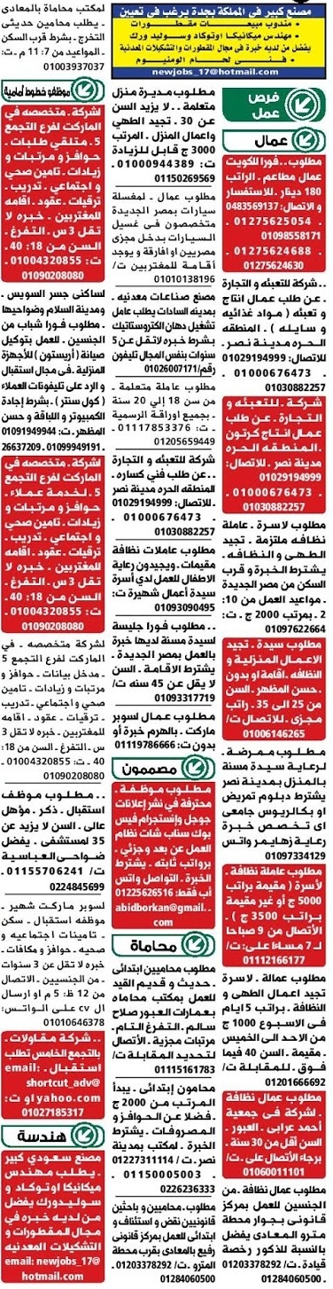 اعلانات وظائف جريدة الوسيط الجمعة 22 2 2019 جميع المحافظات القاهرة الاسكندرية الدلتا وظائف منوعة