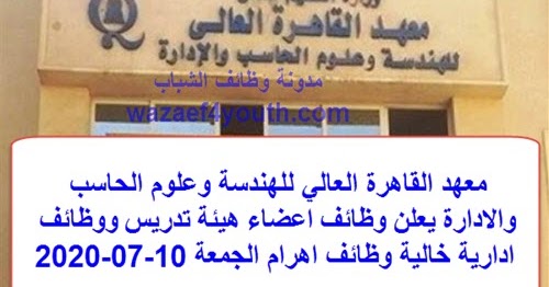 معهد القاهرة العالي للهندسة وعلوم الحاسب والادارة يعلن وظائف اكاديمية وادارية خالية وظائف اهرام الجمعة 10 07 2020