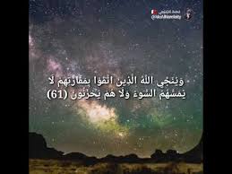 و ي ن ج ي الل ه ال ذ ين ات ق و ا ب م ف از ت ه م ل ا ي م س ه م الس وء ولا ه م ي ح ز ن ون Youtube