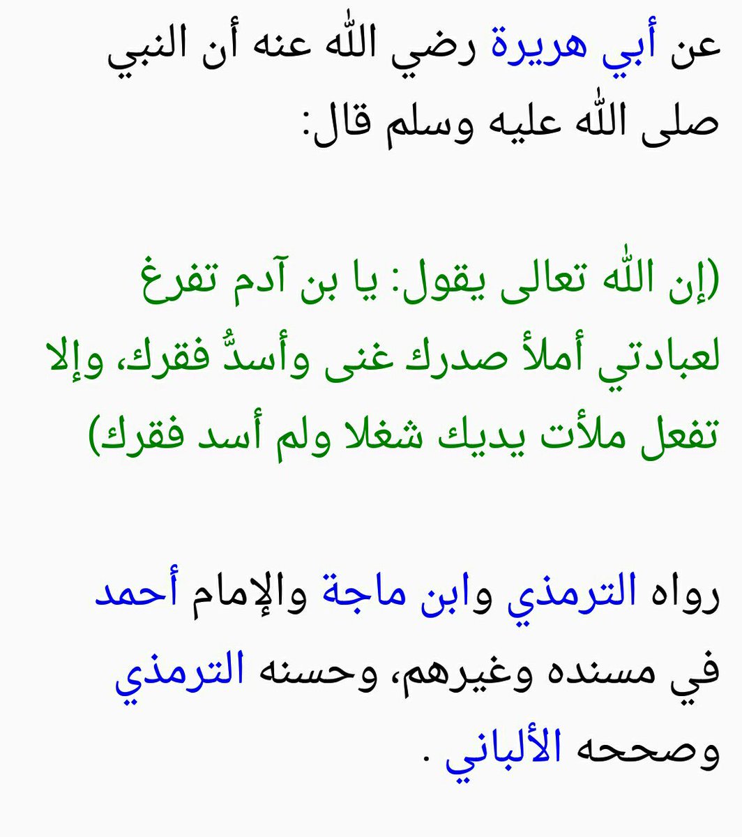صحيح الأحاديث On Twitter يقول الله عز وجل يابن آدم تفرغ لعبادتي أملأ صدرك غنى وأسد فقرك وإن لم تفعل ملأت صدرك شغلا ولم أسد فقرك Http T Co 1wehbvo3rf