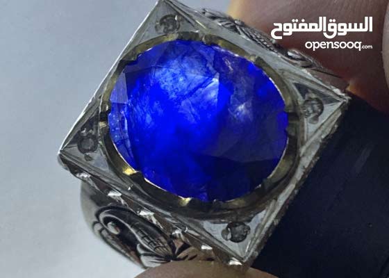 خاتم ياقوت ازرق زفير افريقي مرصع بالالماس مع شهادة 130036618 Opensooq
